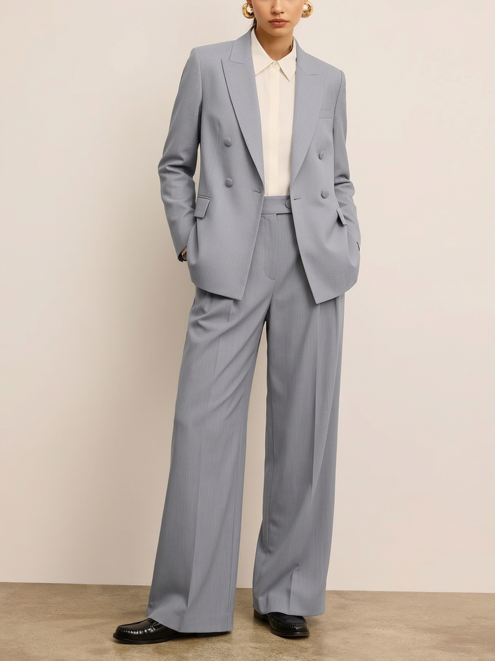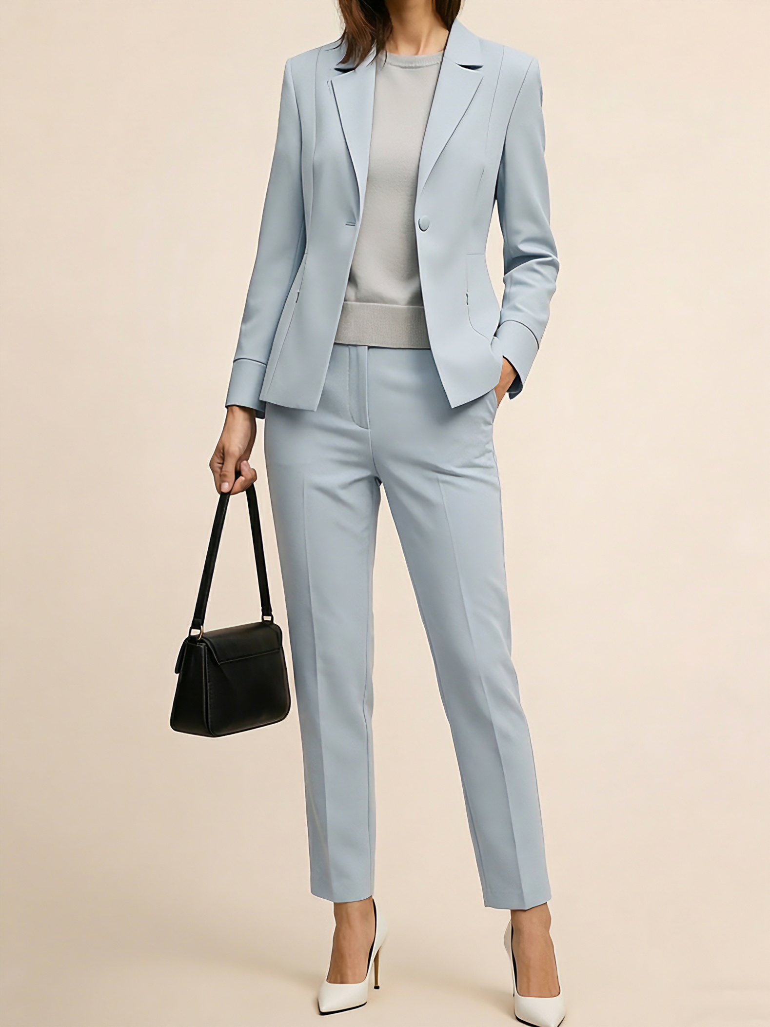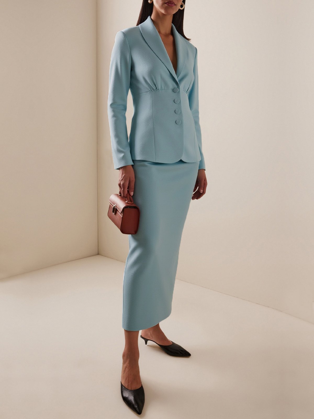 Powder Blue Plain Micro-Elasticity Shawl Collar Regular Sleeve Commuting Blazer