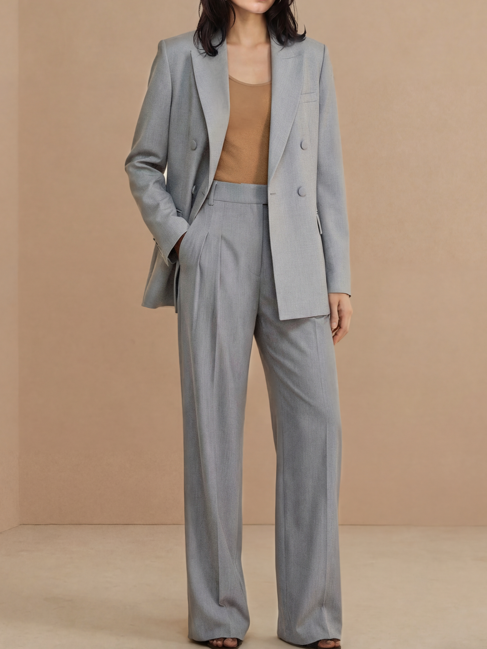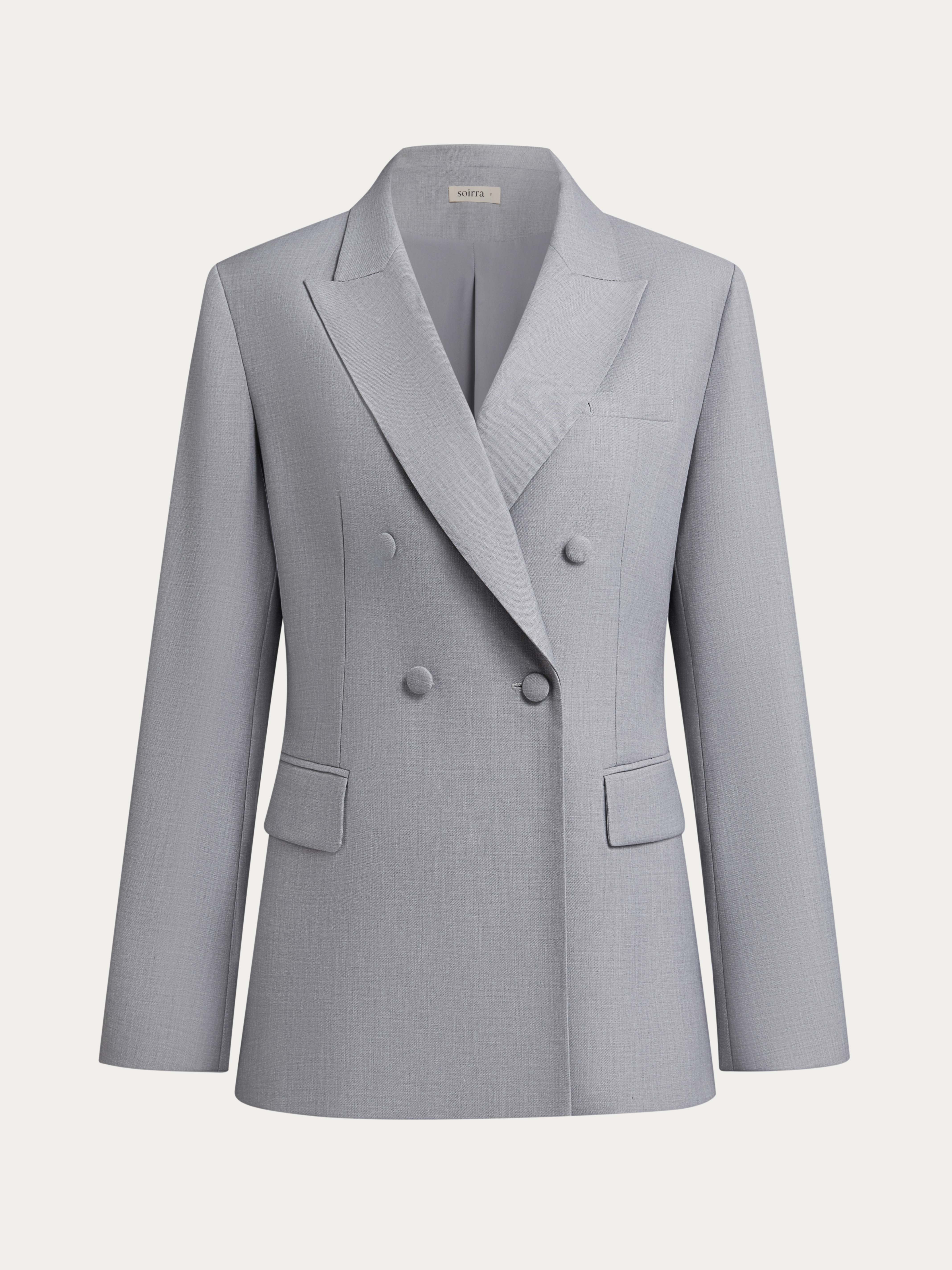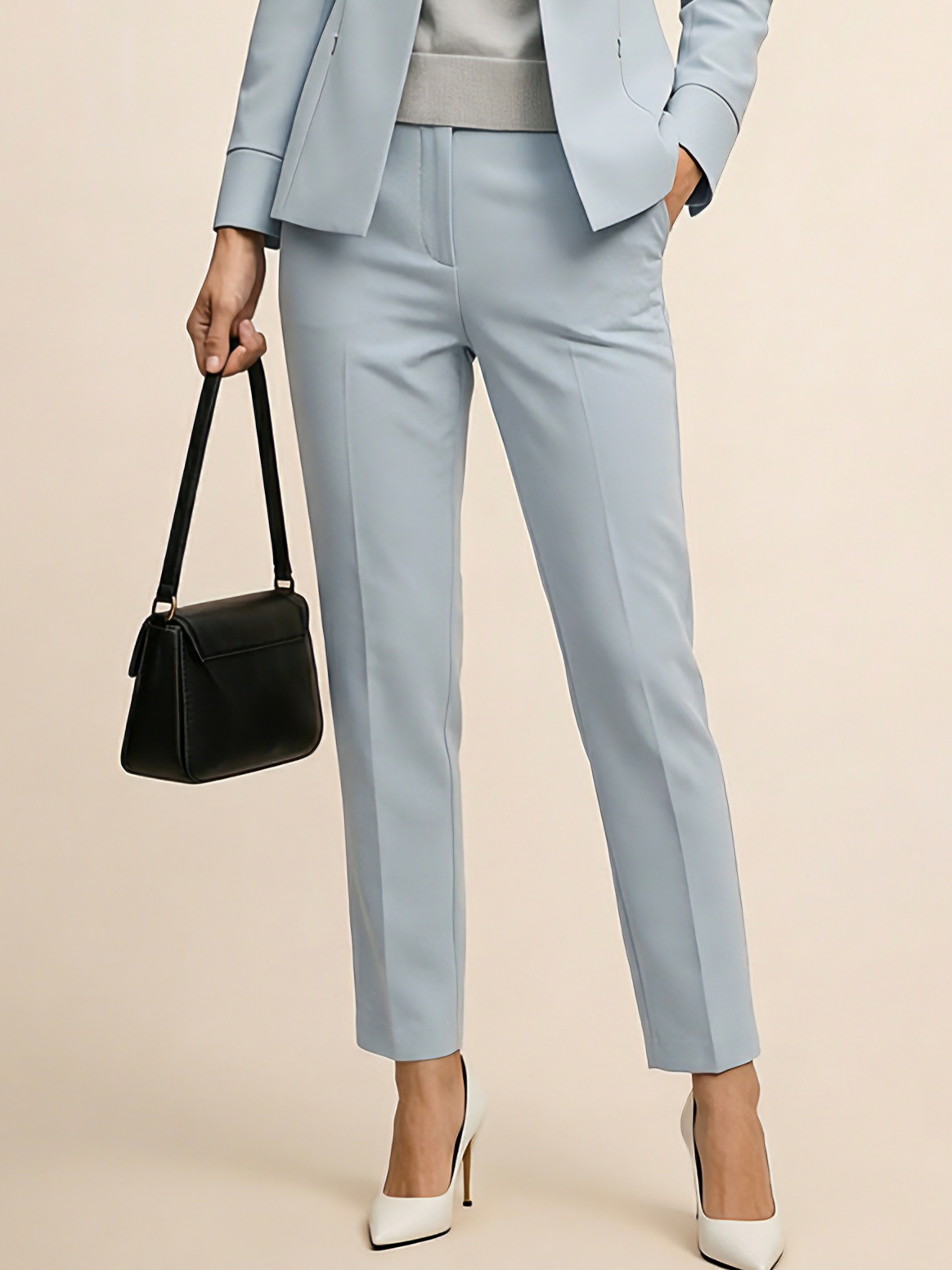 Powder Blue Plain Micro-Elasticity Shawl Collar Regular Sleeve Commuting Blazer