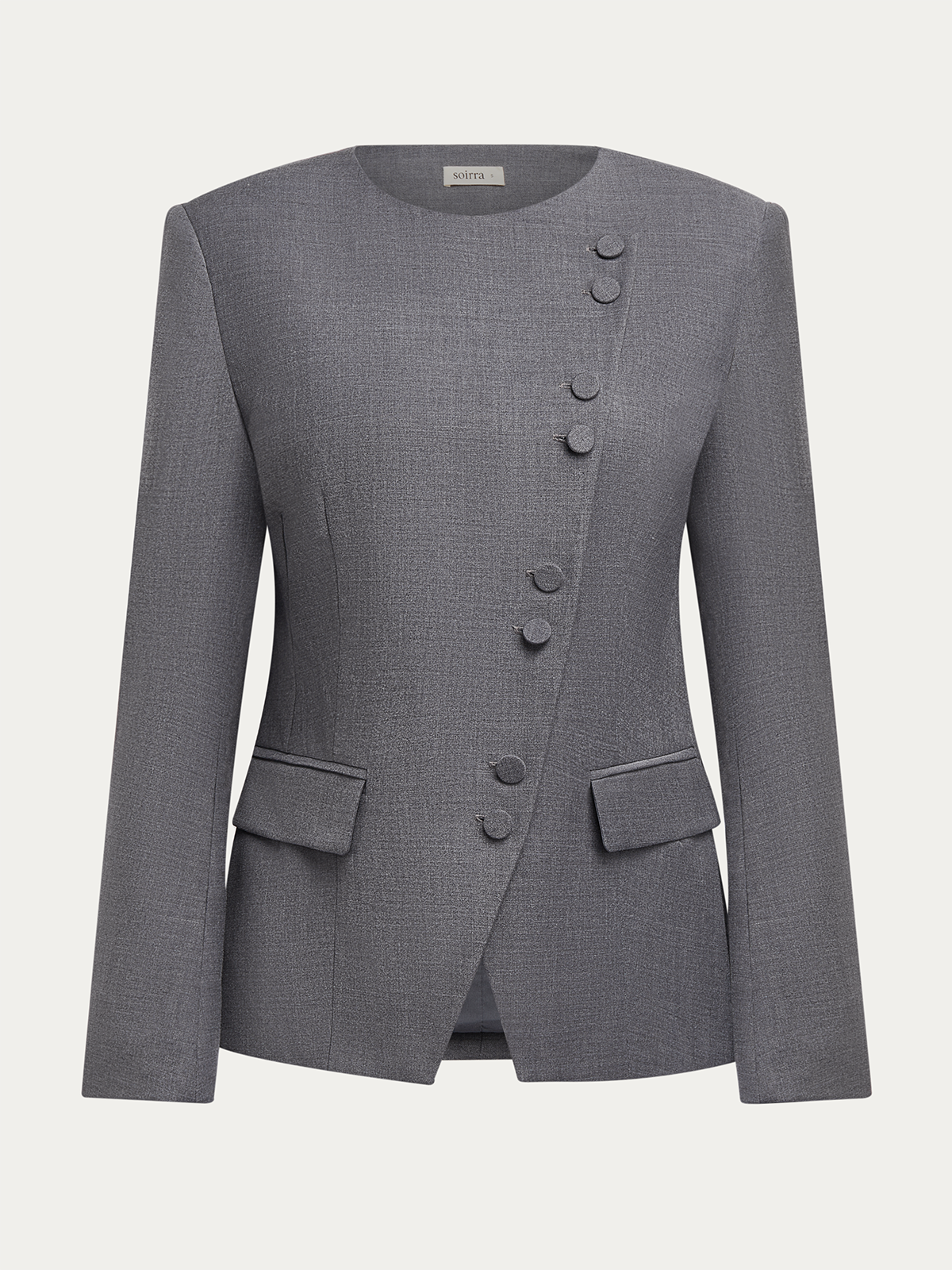 Gray Plain Lapel Collar Wrinkle-Resistant Blazer