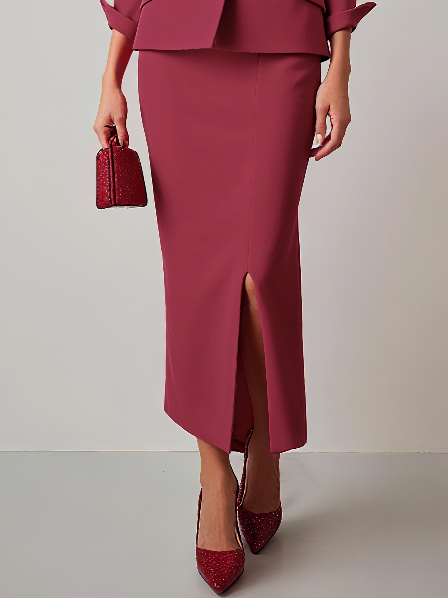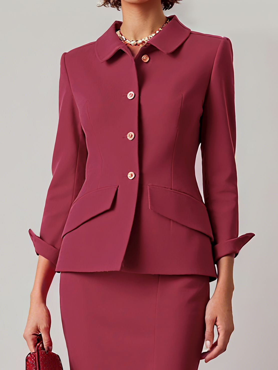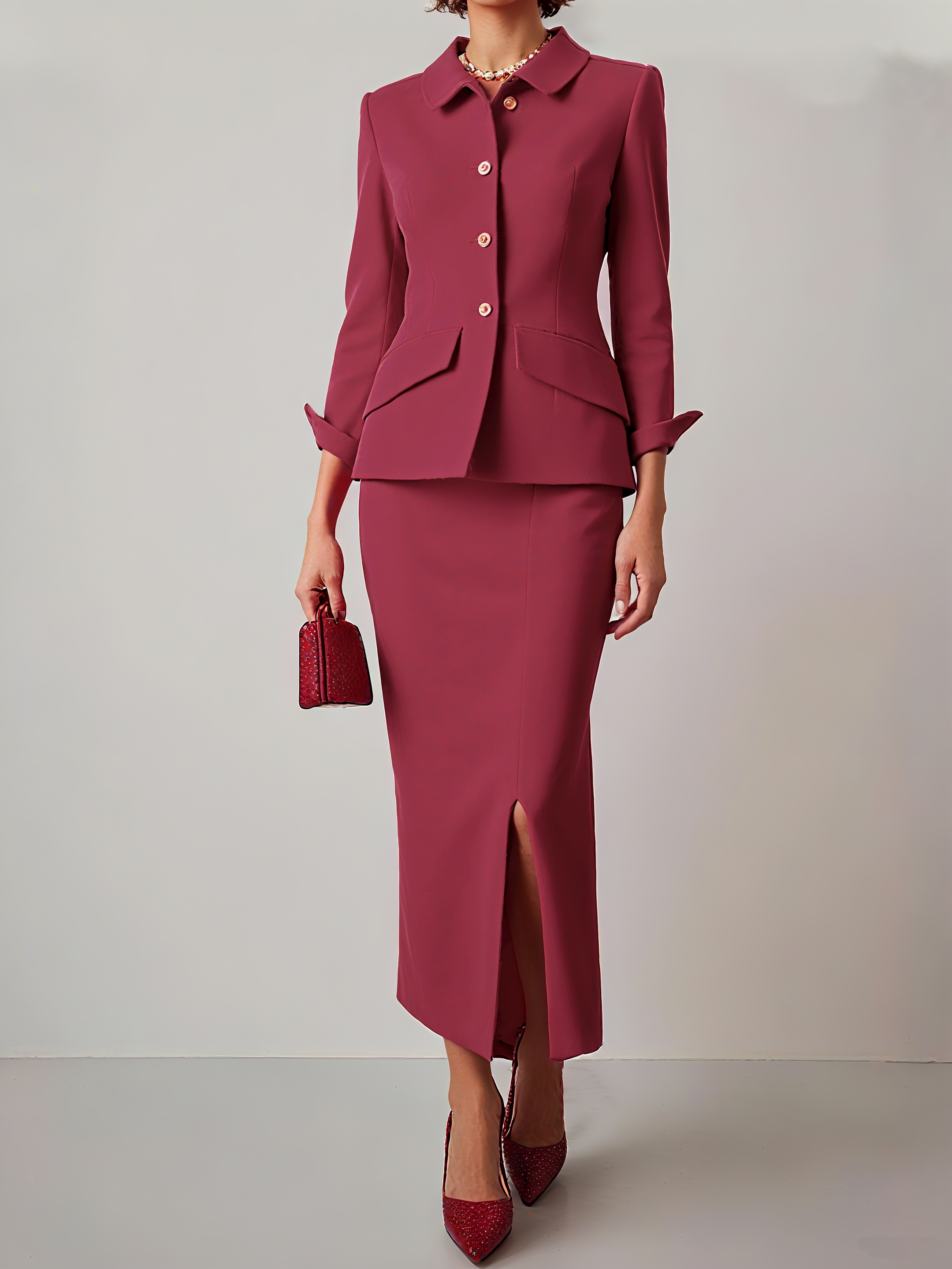 Rose Red Plain Micro-Elasticity Shawl Collar Prom Blazer