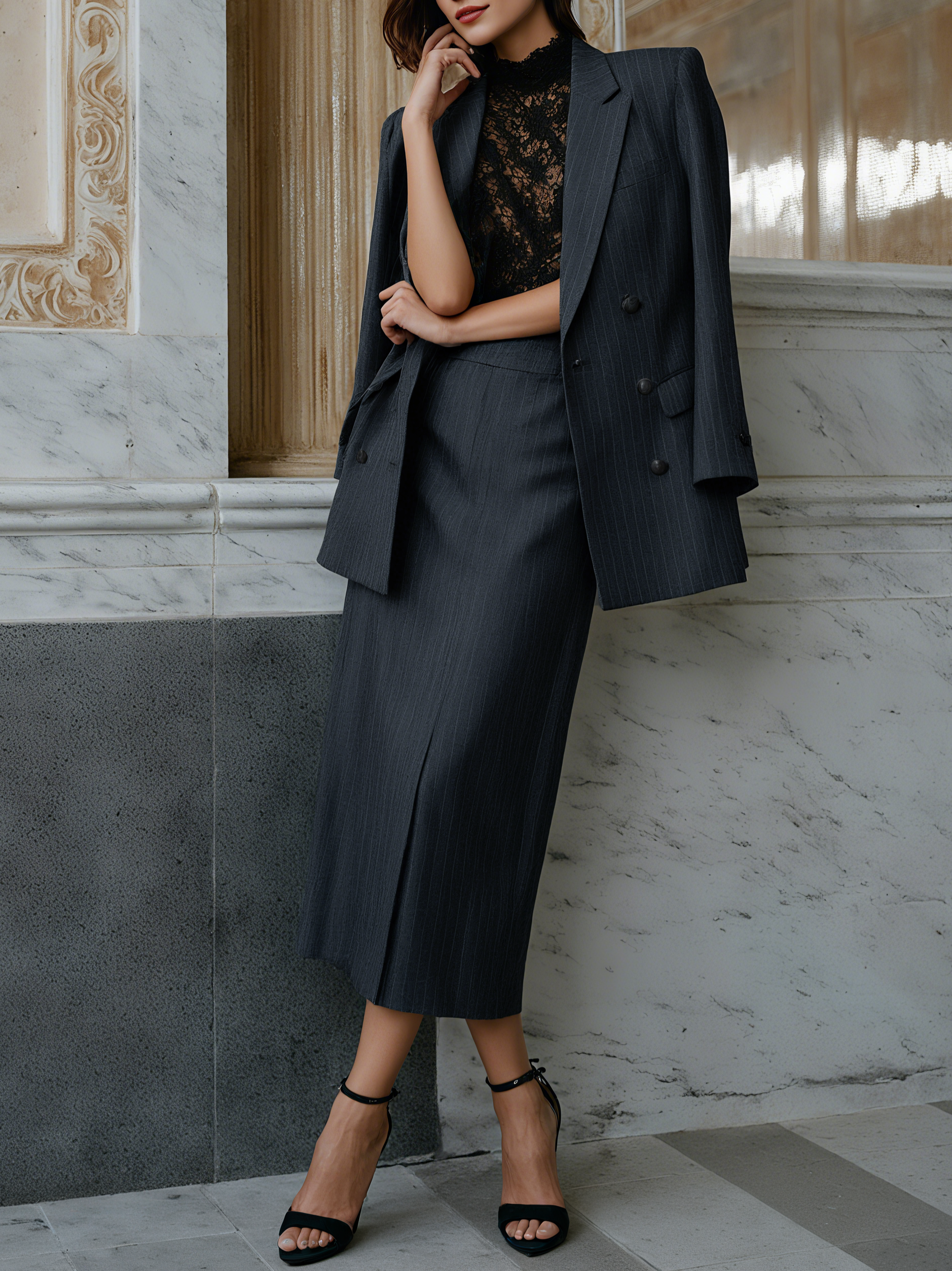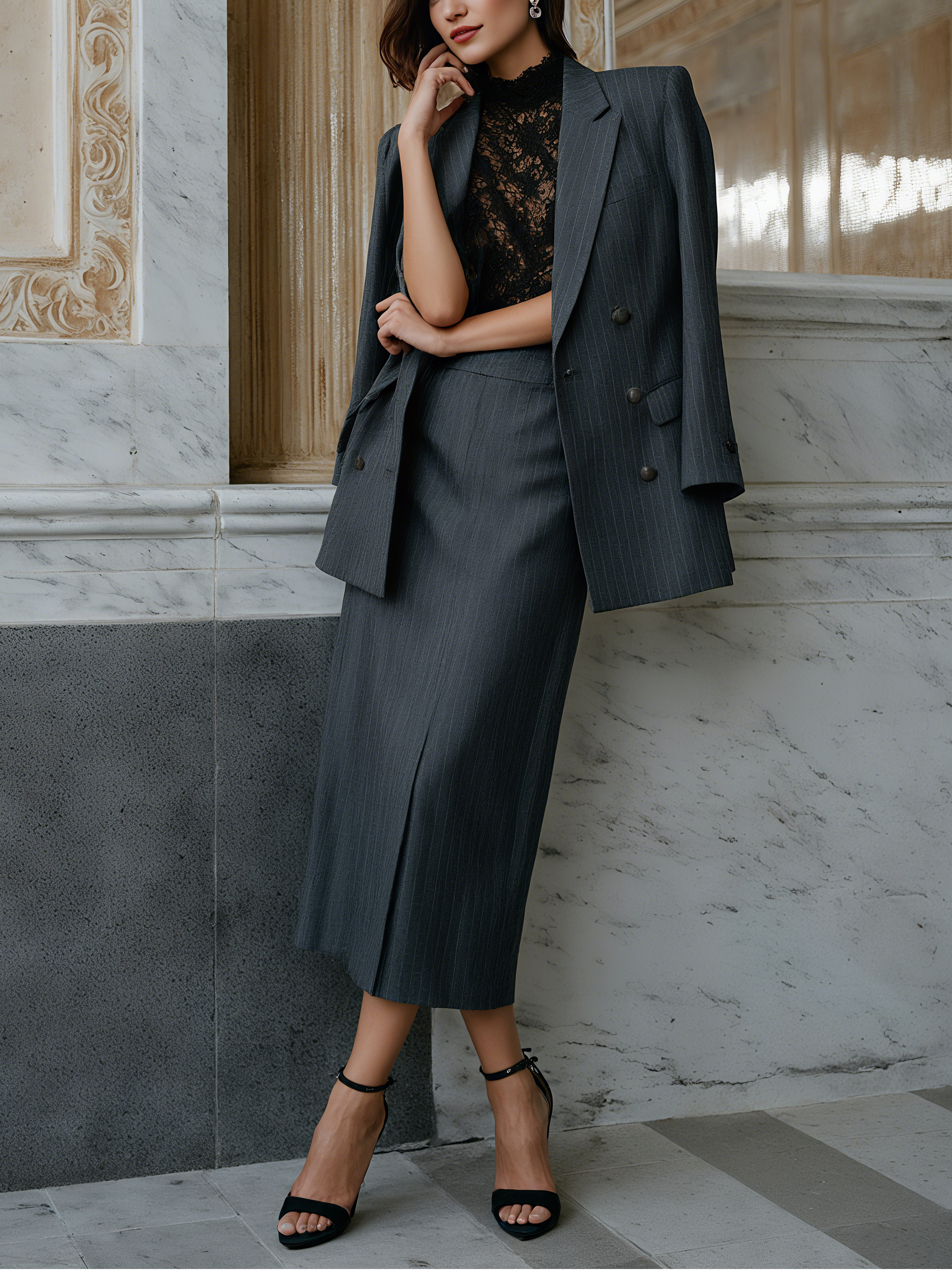 Deep Gray Printing Pencil Skirt H-Line Maxi Together Skirt