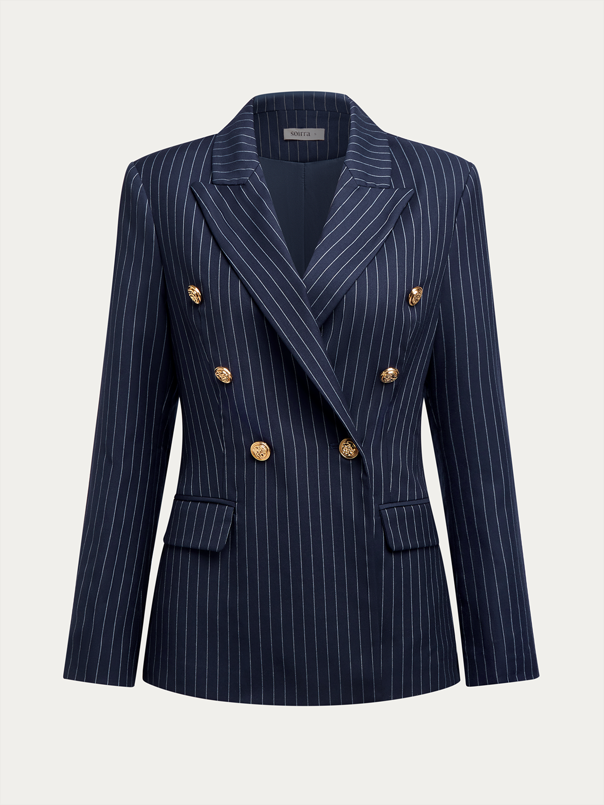 Deep Blue Striped Micro-Elasticity Lapel Collar Prom Blazer