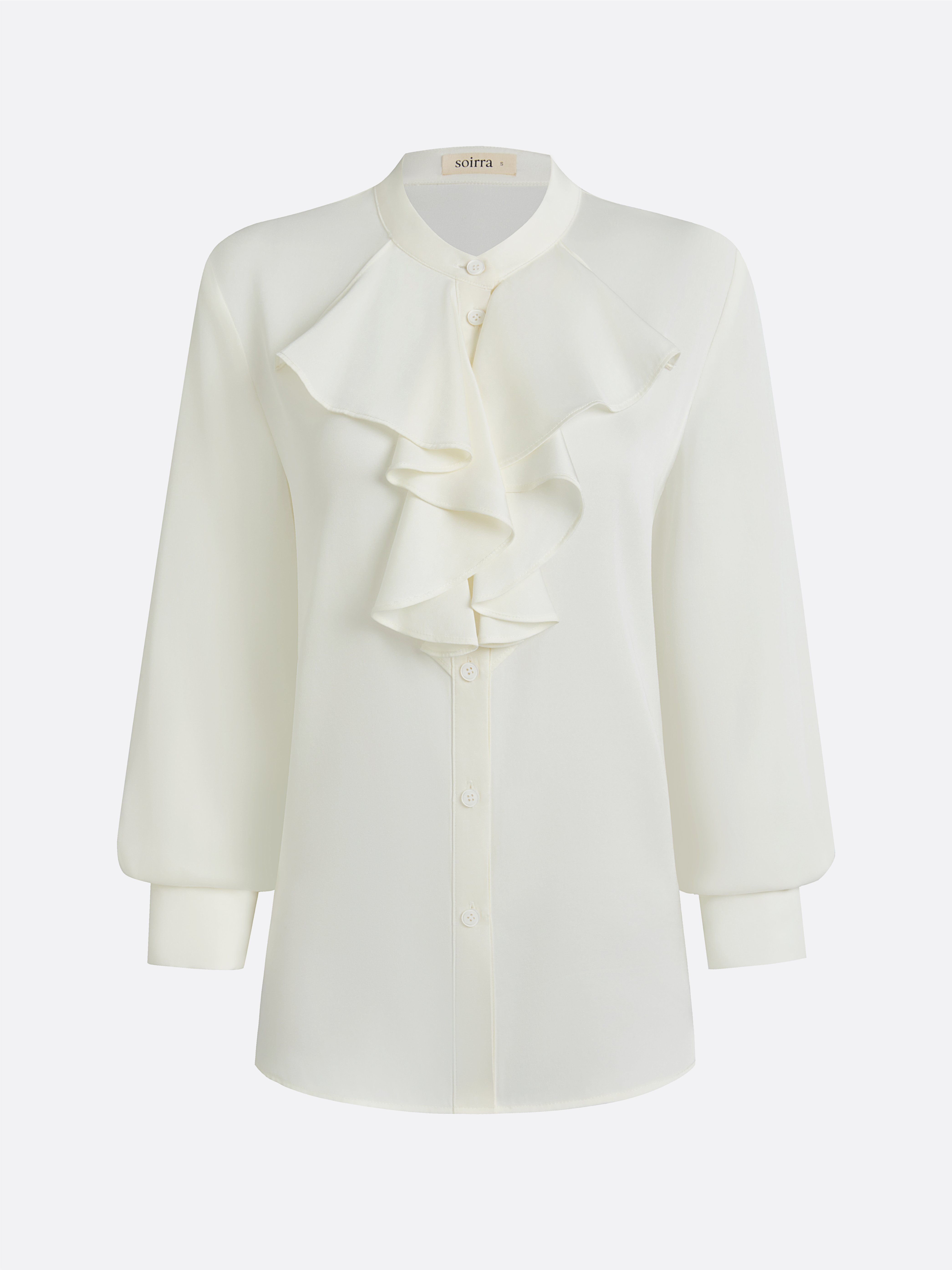 Purple Wrinkle-Resistant Silk Mock-Neck Blouse with Button Detail