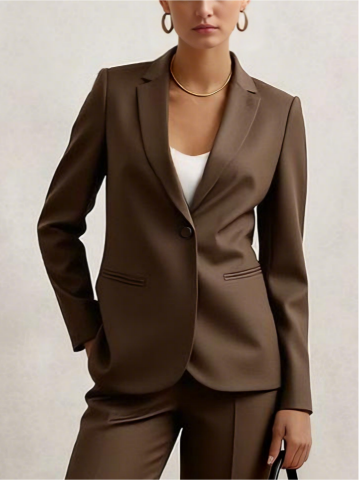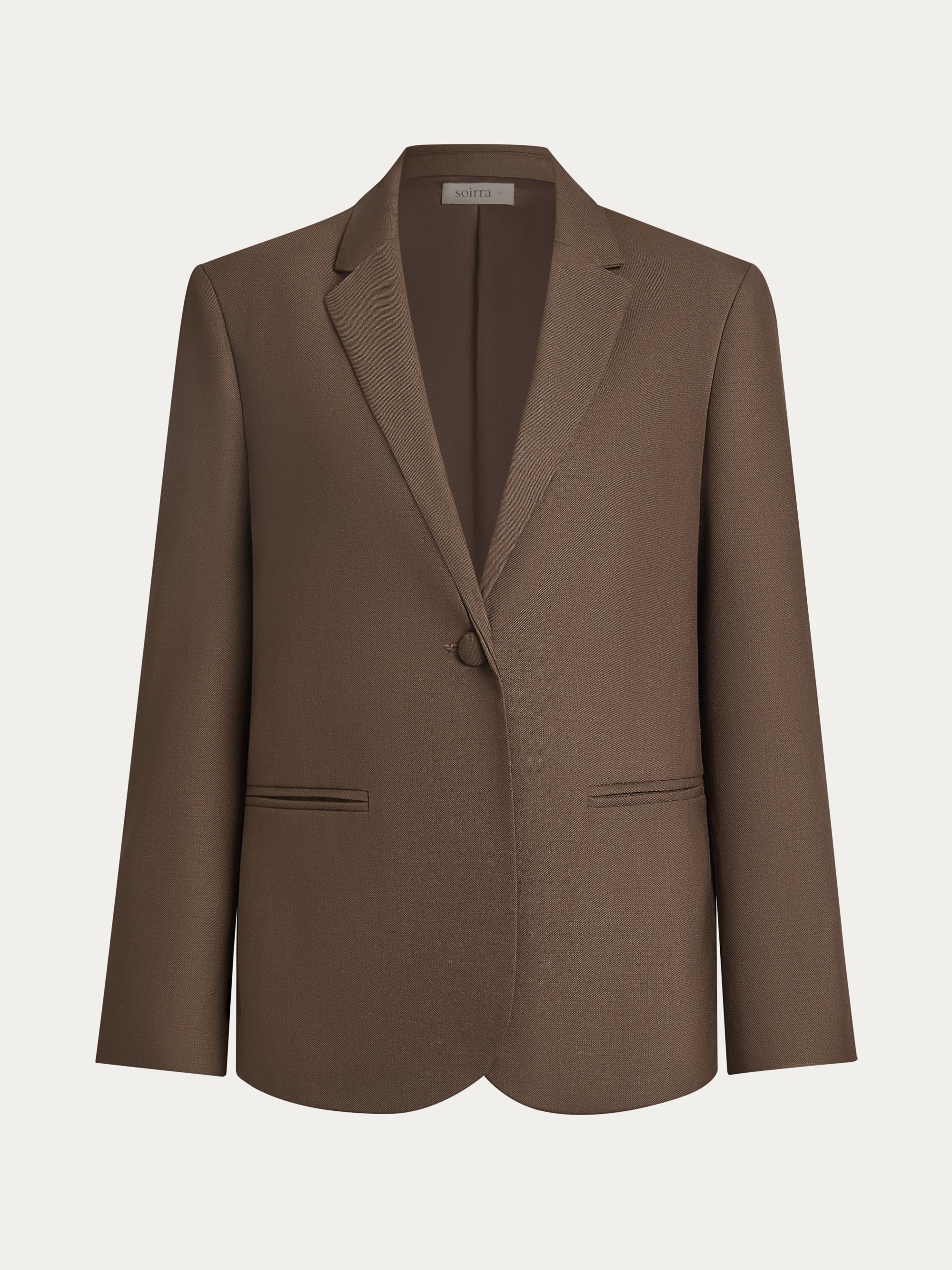 Deep Khaki Wrinkle-Resistant Wool LapelCollar Blazer, Machine-Washable
