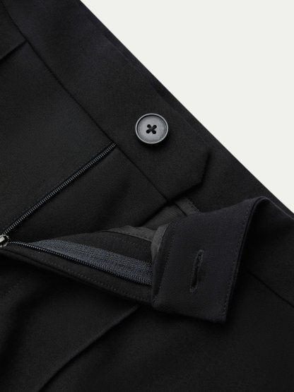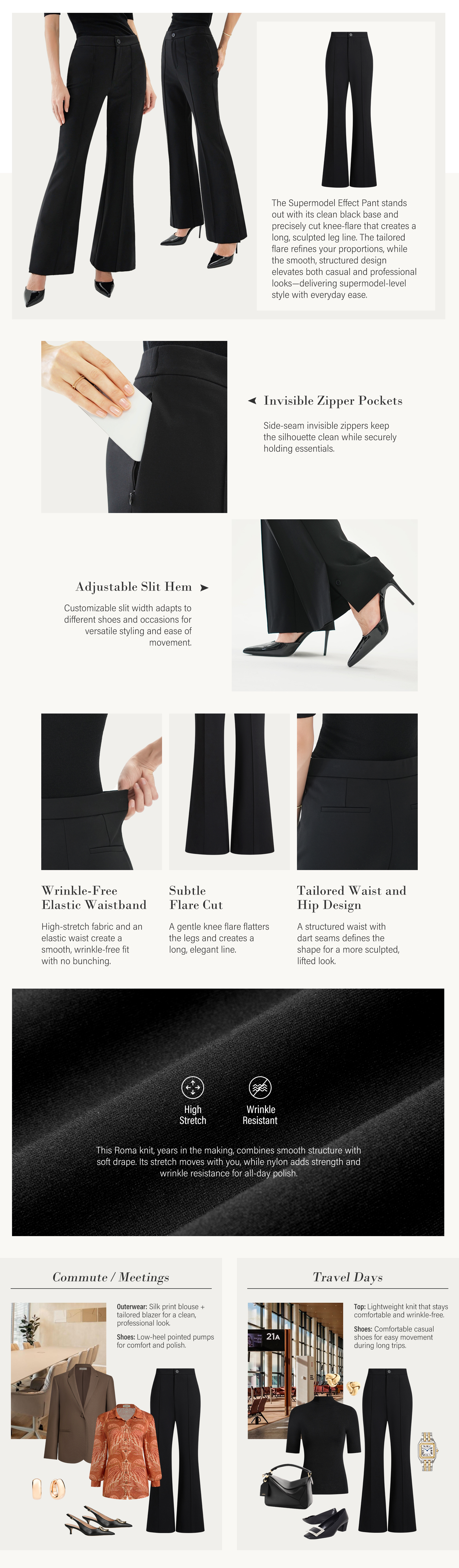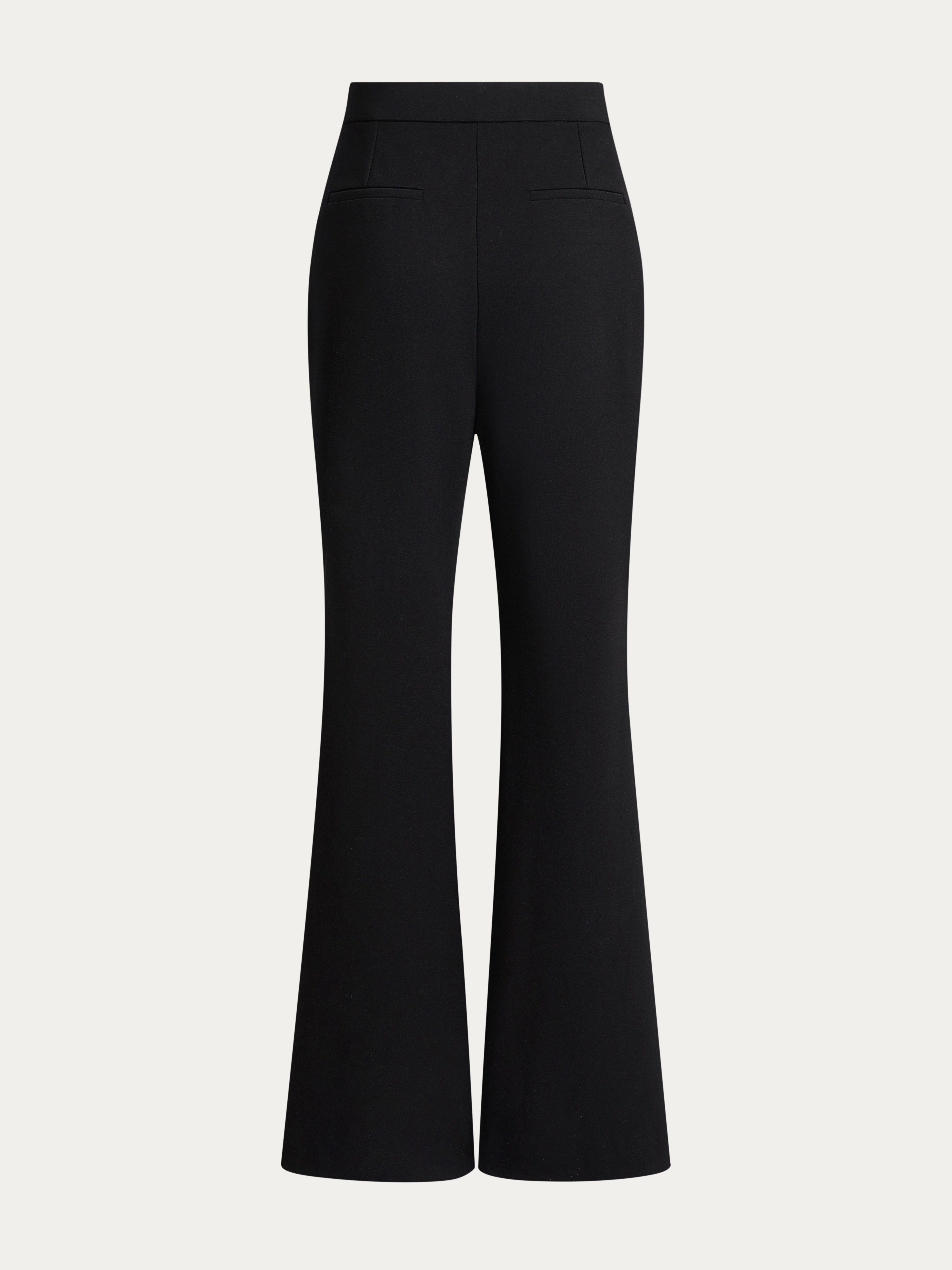 Black Flare H-Line Supermodel Effect Pants with Flat Elastic Waist and Hidden Pocket