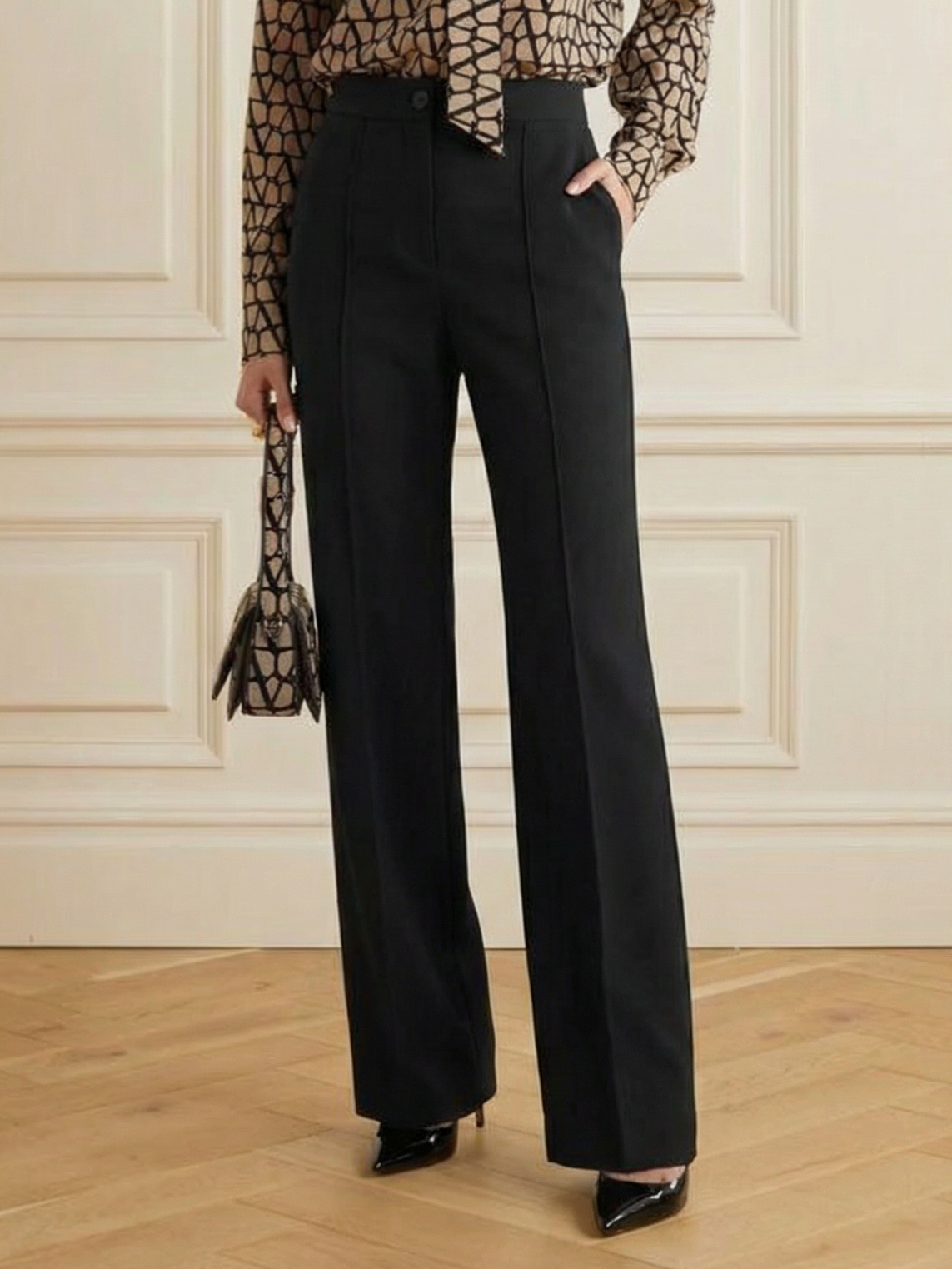 Black Straight Pants H-Line Wrinkle-Resistant Pant