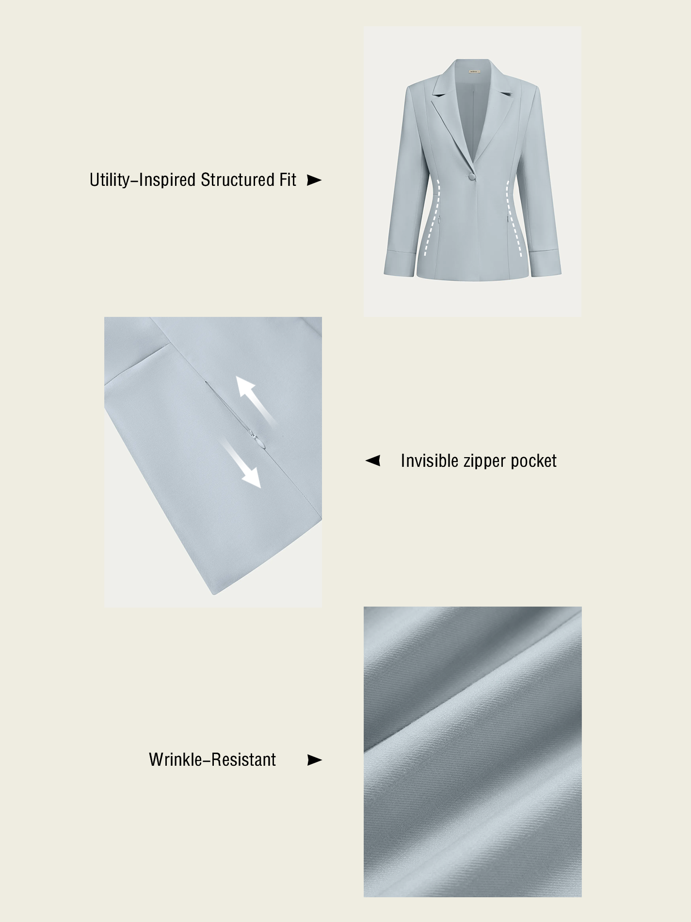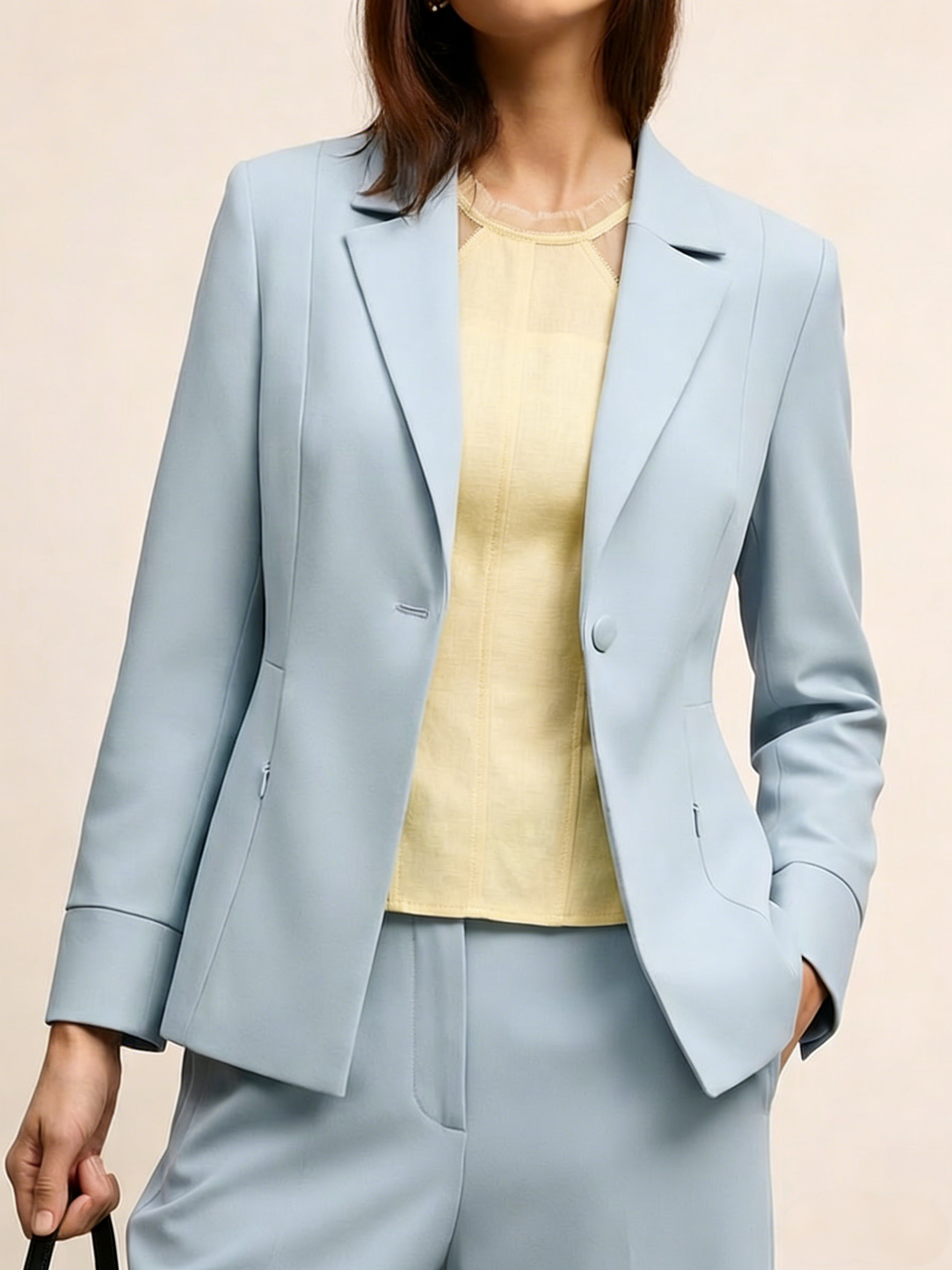 Blue Plain Lapel Collar Wrinkle-Resistant Blazer