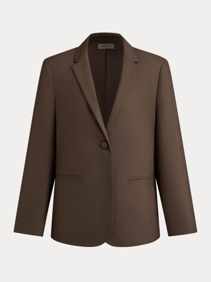 Deep Khaki Wrinkle-Resistant Wool LapelCollar Blazer, Machine-Washable