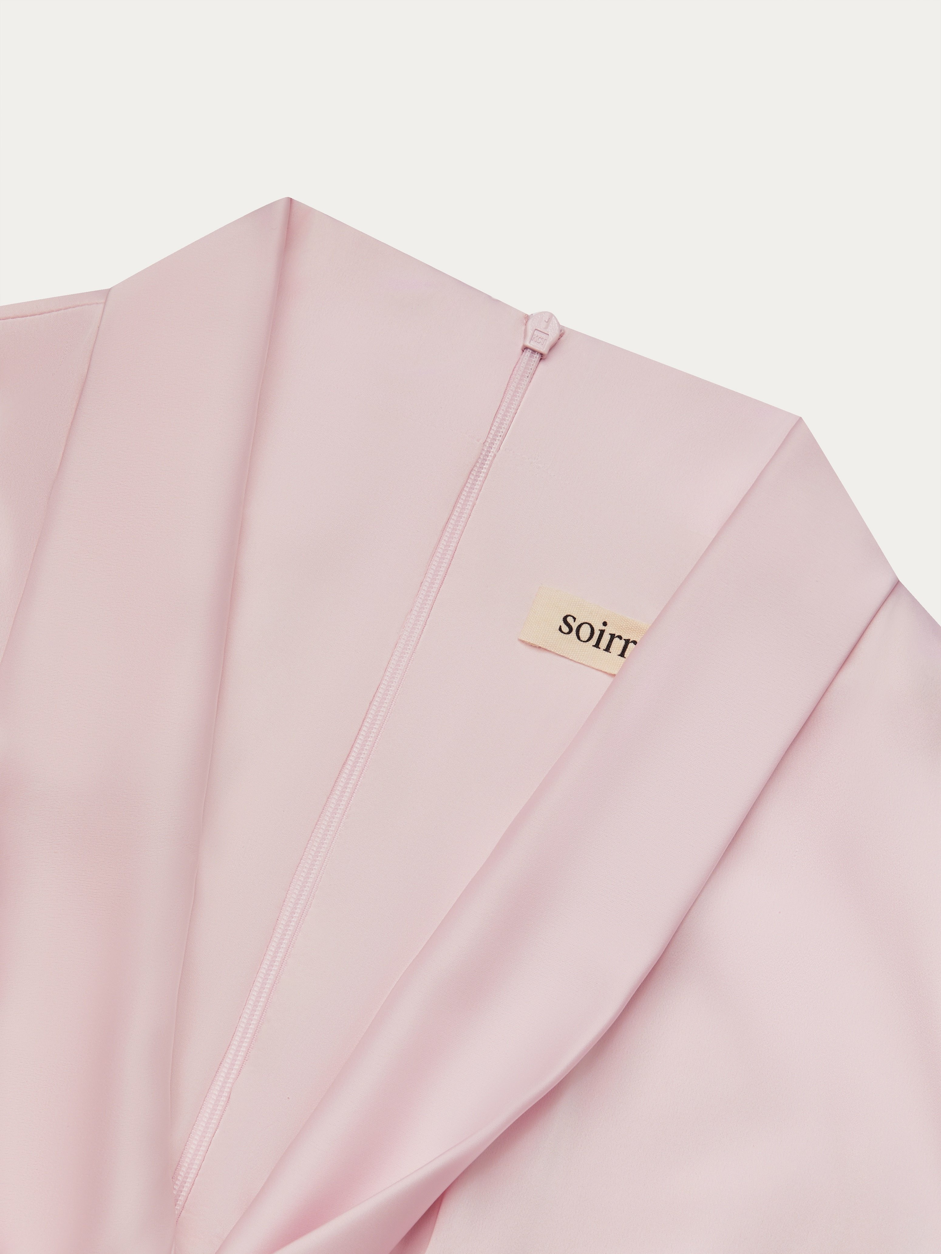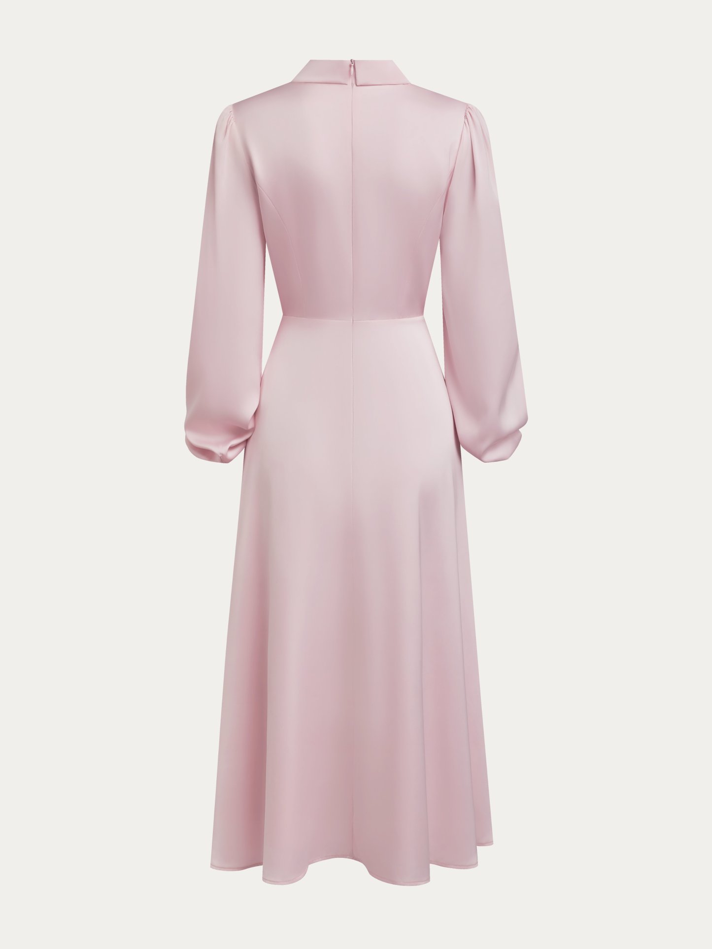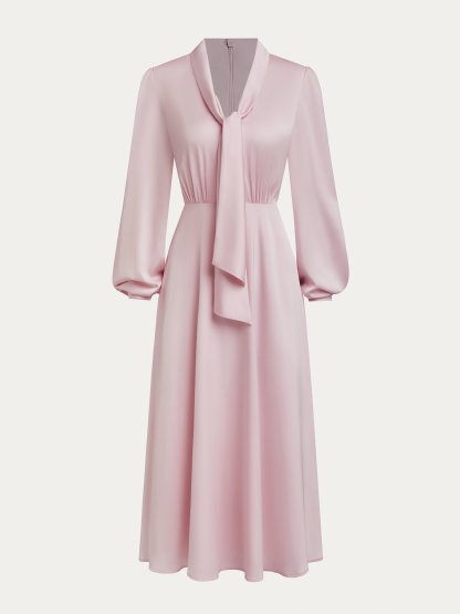 Pink Tie Neck Long Sleeve A-Line Midi Commuting Dress