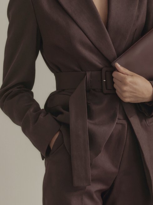 Pleated Waist X-Line Blazer – Long Sleeve, Fully Lined
