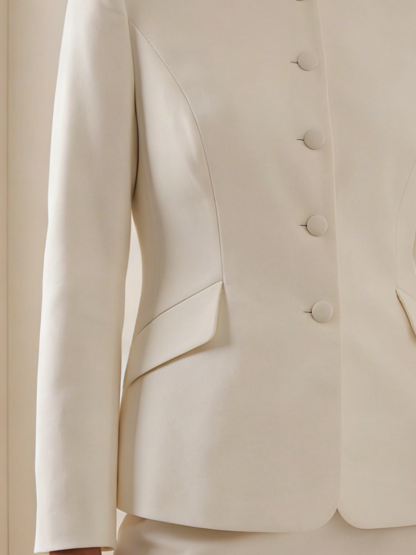 White Plain Micro-Elasticity Crew Neck Wrinkle-Resistant Blazer